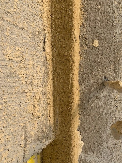 Putsen läggs på i långa våder uppifrån och ner i hela husets höjd. Hela höjden måste läggas på utan att göra några avbrott annars riskerar man att man får en synlig skarv i fasaden. Därför blir det ibland avbrott eftersom man inte kan påbörja putsningen om man inte är säker på att hinna med hela våden.