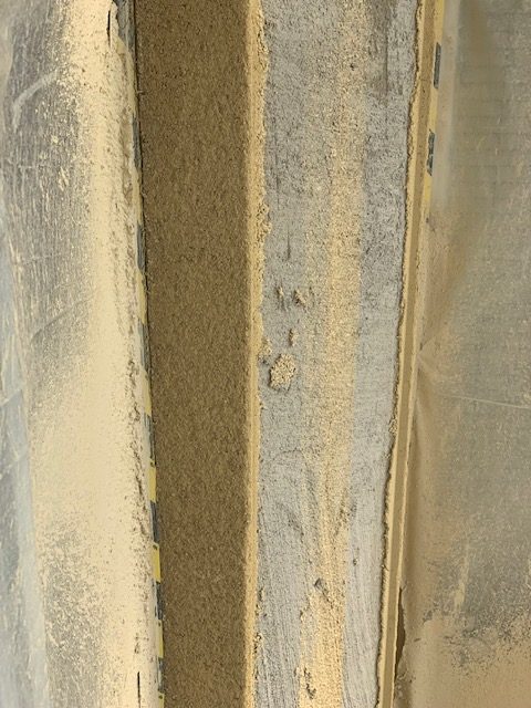 Slutputsningen har börjat med de något mörkare fälten mellan burspråken vilket är den svåraste delen av putsningen.